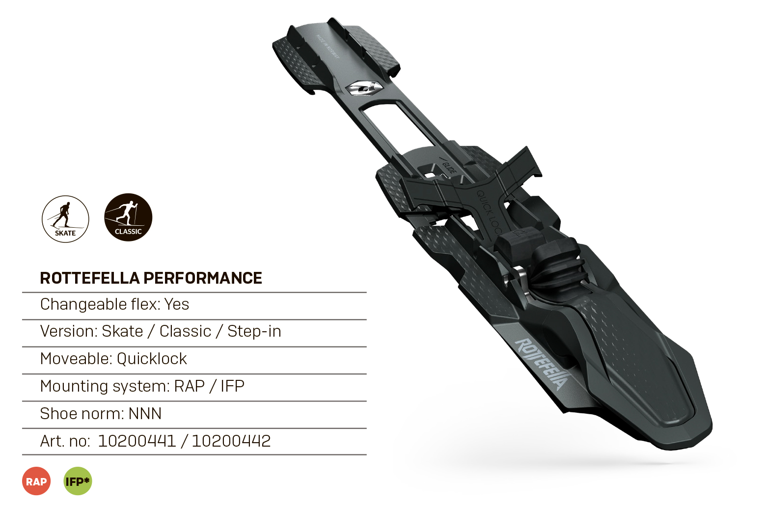 Крепления совместимы с лыжами для конькового хода с пластиной RAP или IFP.