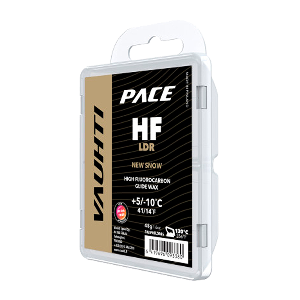 Высокофторовый парафин PACE HF LDR рекомендован для гонок на длинные дистанции, так как обладает исключительной износостойкостью, хорошо отталкивает грязь.